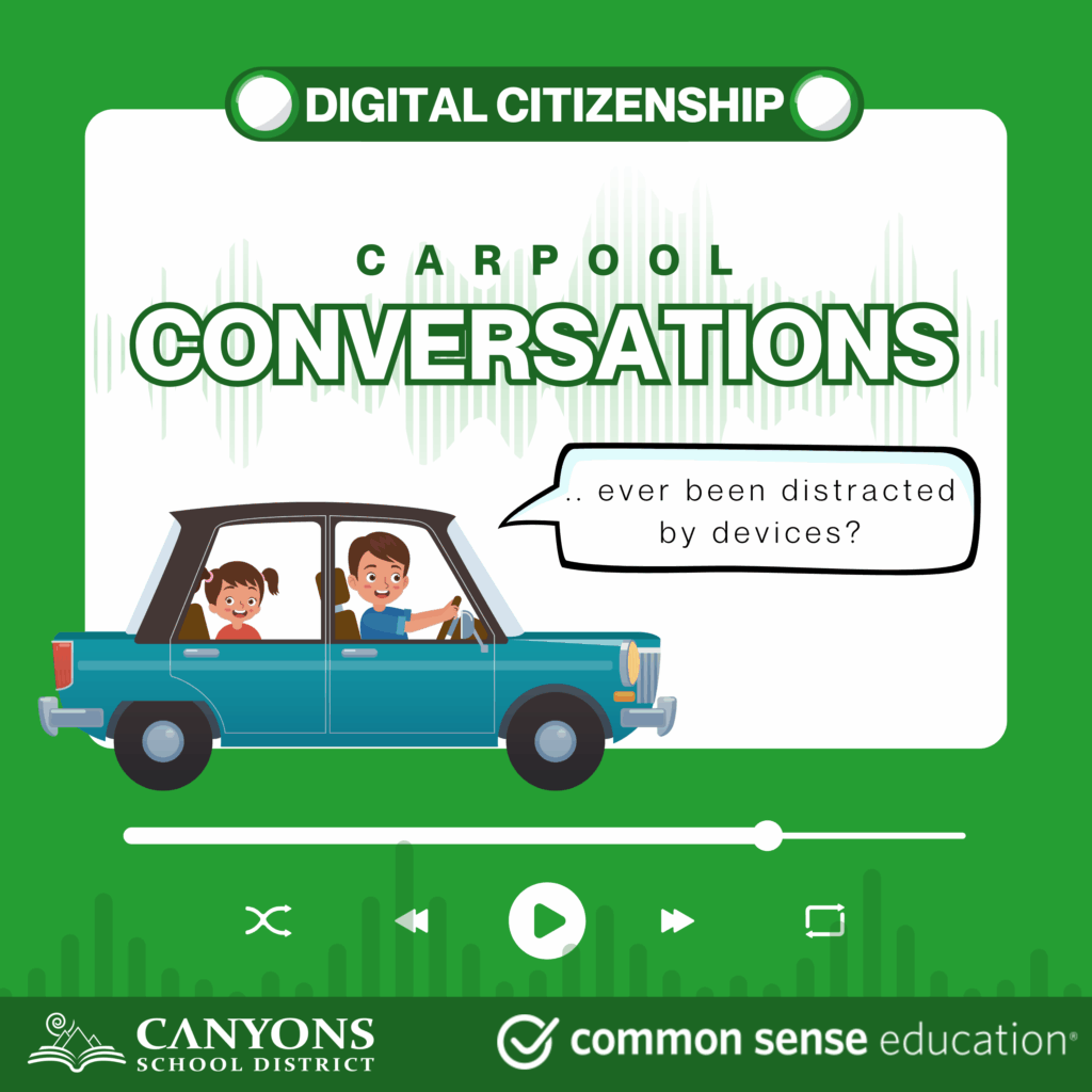 Devices can be distracting — even for us adults! Use your next drive to chat with your kids about balance. Try a Common Sense Carpool Conversation podcast to get the conversation started. https://tinyurl.com/carpool3-5Links to an external site.